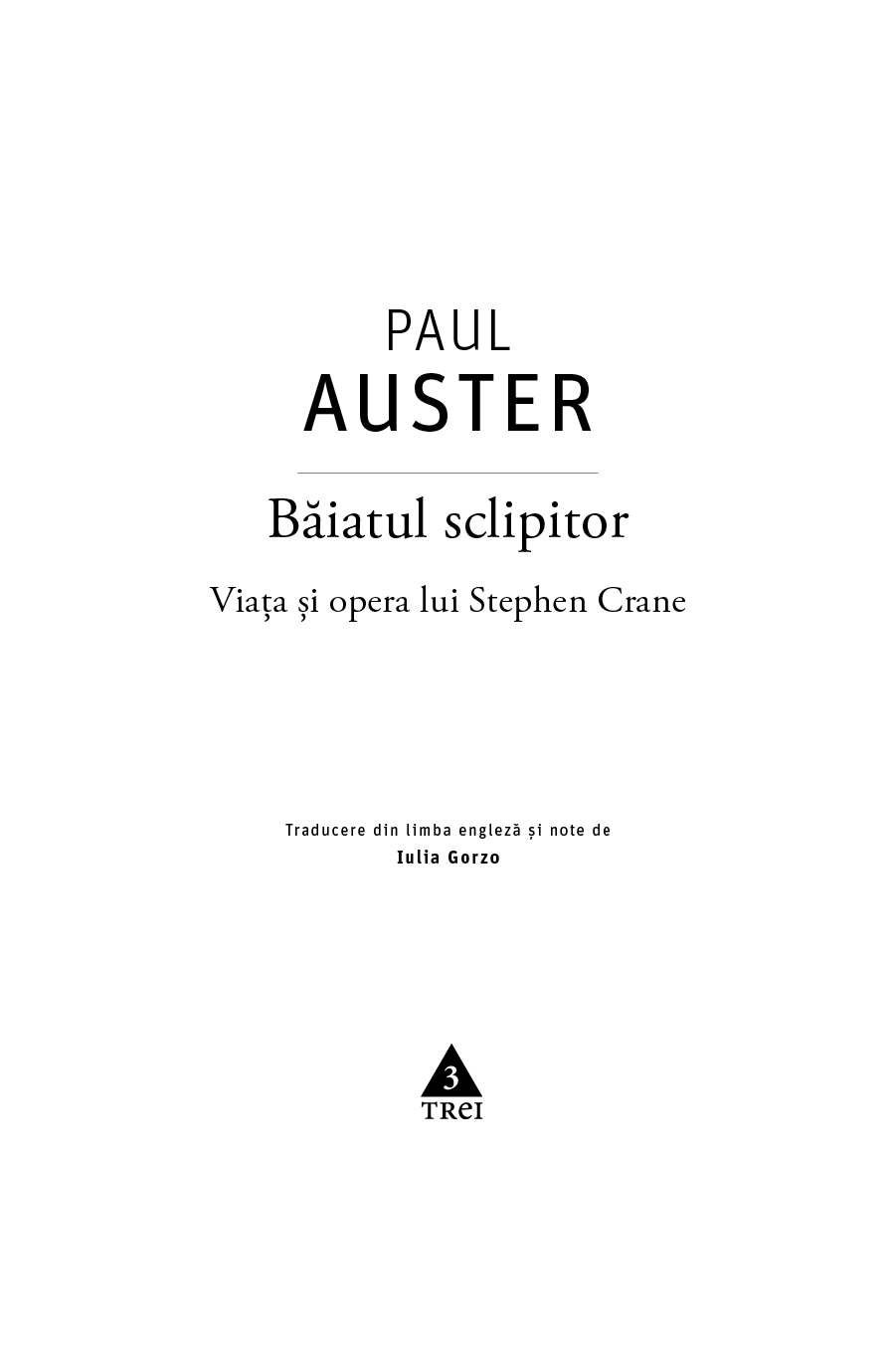 Cum opera lui Stephen Crane e analizată în amănunt, iar titlurile sunt de multe ori importante în analiza lui Paul Auster, am luat decizia să le traduc pe toate, chiar și în cazul articolelor, povestirilor și volumelor care nu au apărut niciodată în limba română. Totodată, toate traducerile din textele lui Stephen Crane citate de Paul Auster îmi aparțin.