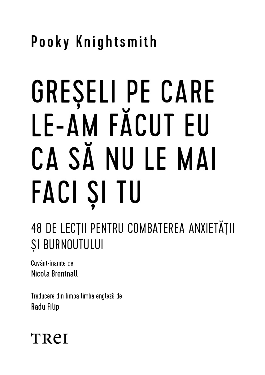 Cititorule, ai ales bine. Vei descoperi că această carte este foarte inteligentă și foarte blândă, plină de lucruri bune. Pooky ne împărtășește experiența ei, propriile insighturi care sunt extraordinar de utile. Cu o sinceritate dezarmantă, ne spune cum a abordat aspectele privind nesiguranța, ideația suicidară, anorexia și anxietatea în moduri care ajung la noi cu multă iubire și înțelegere față de cei care se confruntă cu provocări similare. Se ocupă de suișurile și coborâșurile pe care le trăim cu toții, de iubire, pierdere, copii, familii și multe altele. Cartea aceasta ne oferă tehnici cu care să facem față provocărilor cu care ne confruntăm în propria viață și să ne acceptăm pe noi înșine așa cum suntem, fără reproșuri. Mulți dintre noi n-am trecut prin toate lucrurile prin care-a trecut Pooky, dar suntem cu toții oameni, cu incertitudini și îngrijorări, cu regrete, speranțe, prieteni toxici, visuri și îndoieli proprii. Cartea aceasta are ceva pentru fiecare dintre noi.